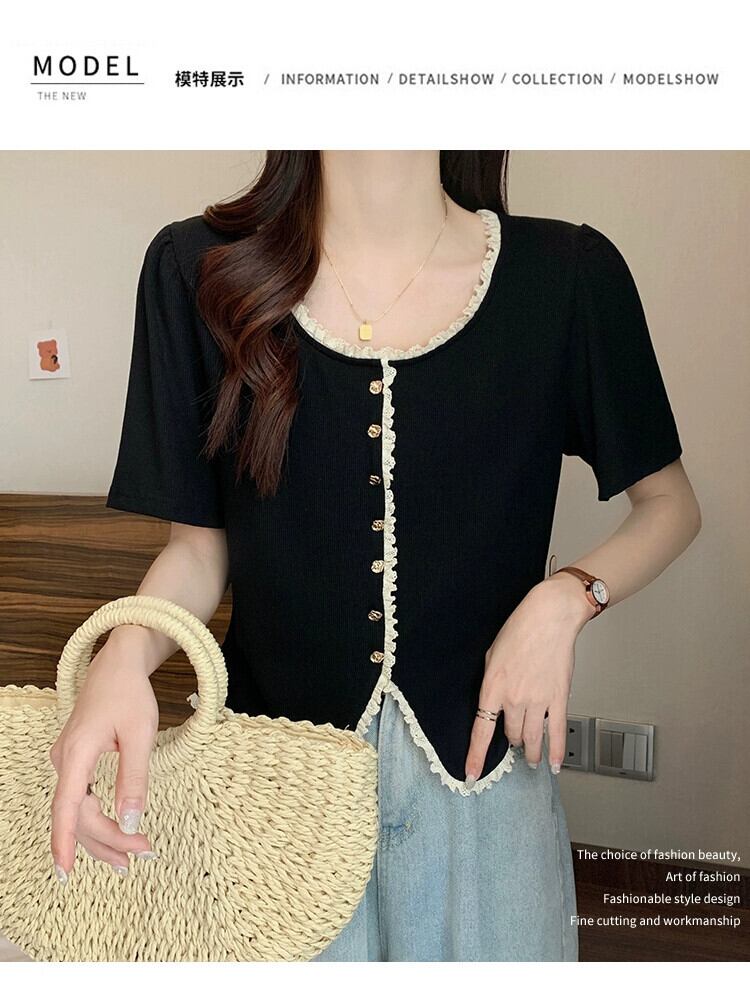 プラスサイズの女性の 2024 夏ファットシスターカーディガン Tシャツニット半袖お腹カバートップ ショート ハーフスリーブ 大きめサイズ サマー 夏物 841S164594965423