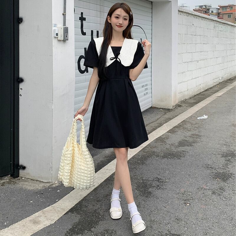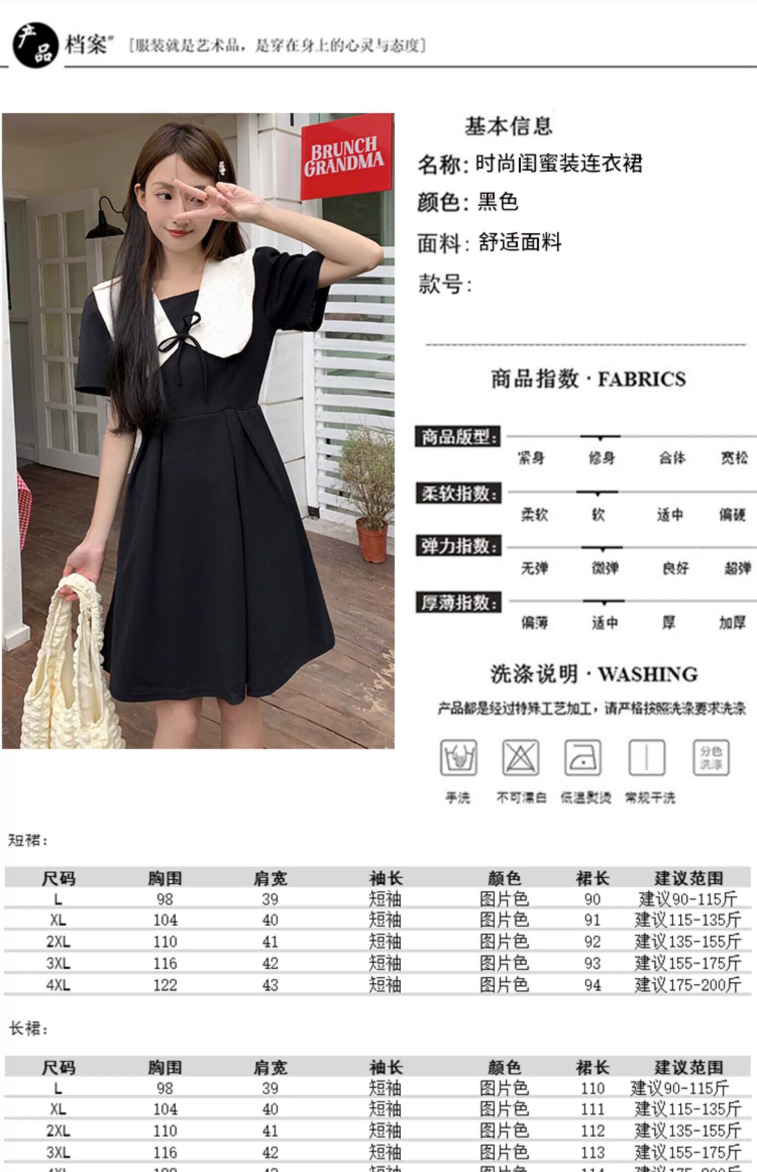 プラスサイズの女性の 2024 夏服脂肪フレンチウエスト痩身と年齢軽減 A ラインスカート人形襟シフォンドレス 大きめサイズ サマー 夏物 Aライン 841S1636114110597