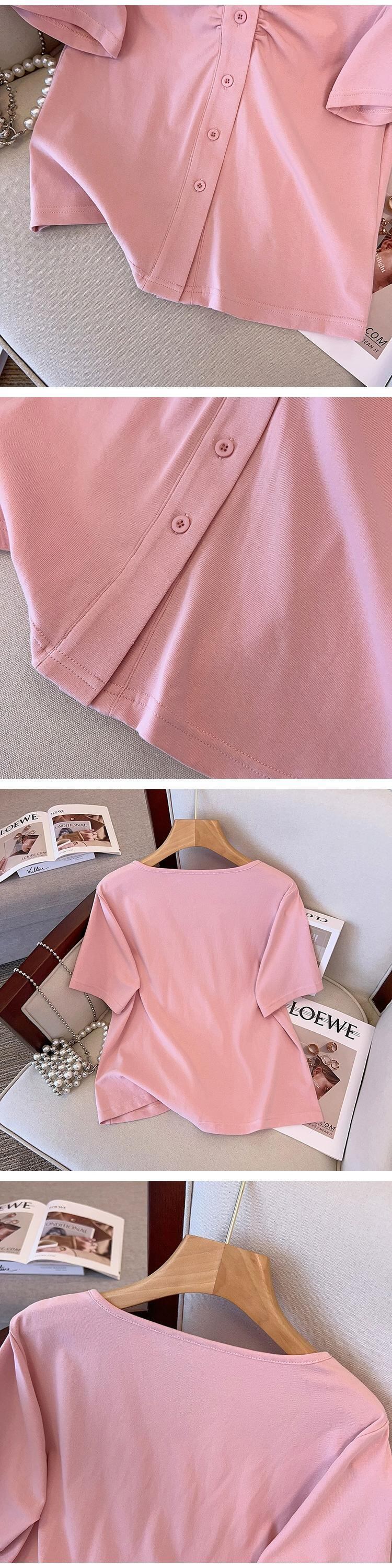 プラスサイズの婦人服 2024 流行の夏の新しい脂肪ファッショナブルな多目的トップス痩身プリーツ半袖 T シャツ 大きめサイズ サマー 夏物 Tシャツ 841S1620289784811