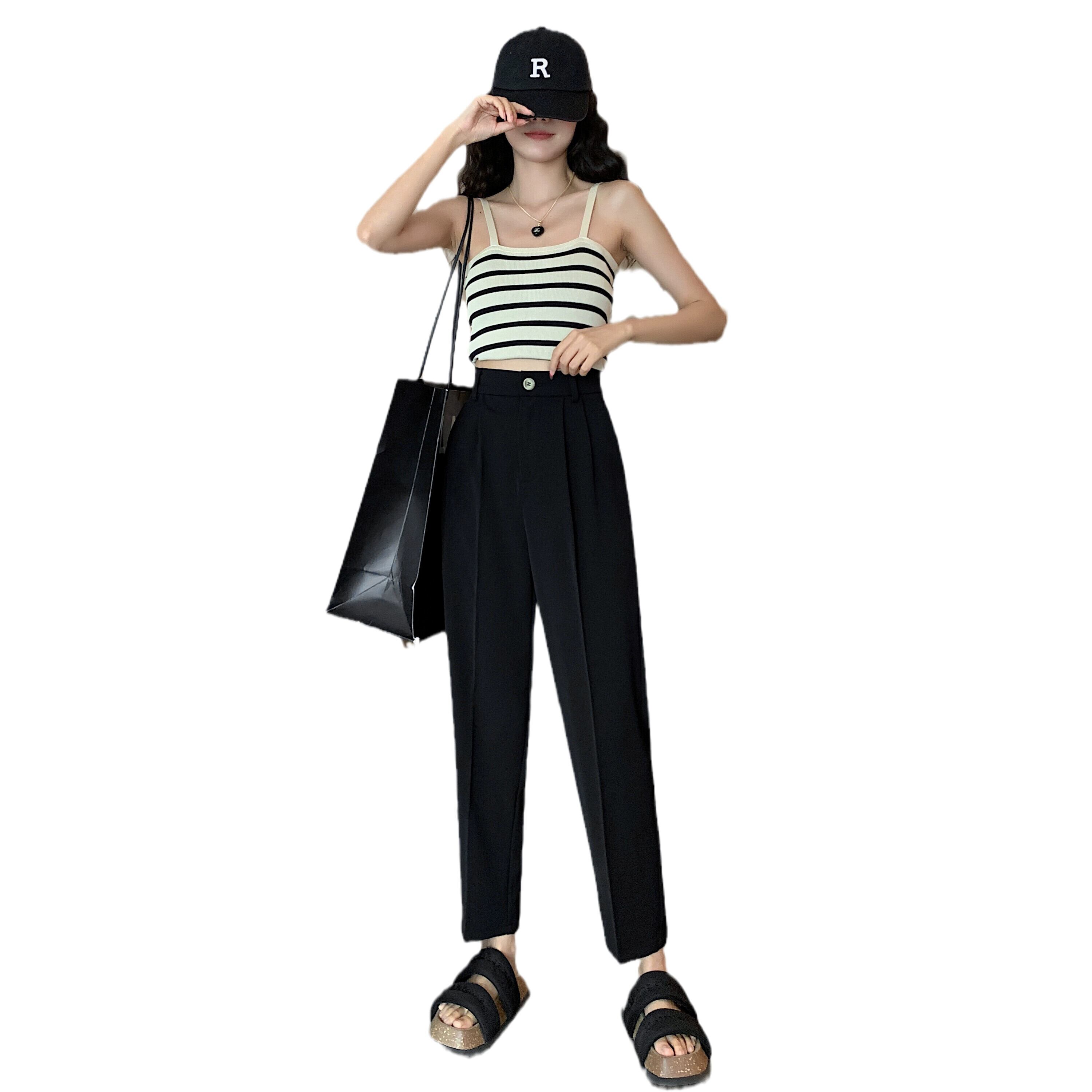 プラスサイズの女性の 2024 ファットシスターサマースーツパンツルーズウエストスリムドレープシガレットパンツ 大きめサイズ 夏物 841S1641656785431