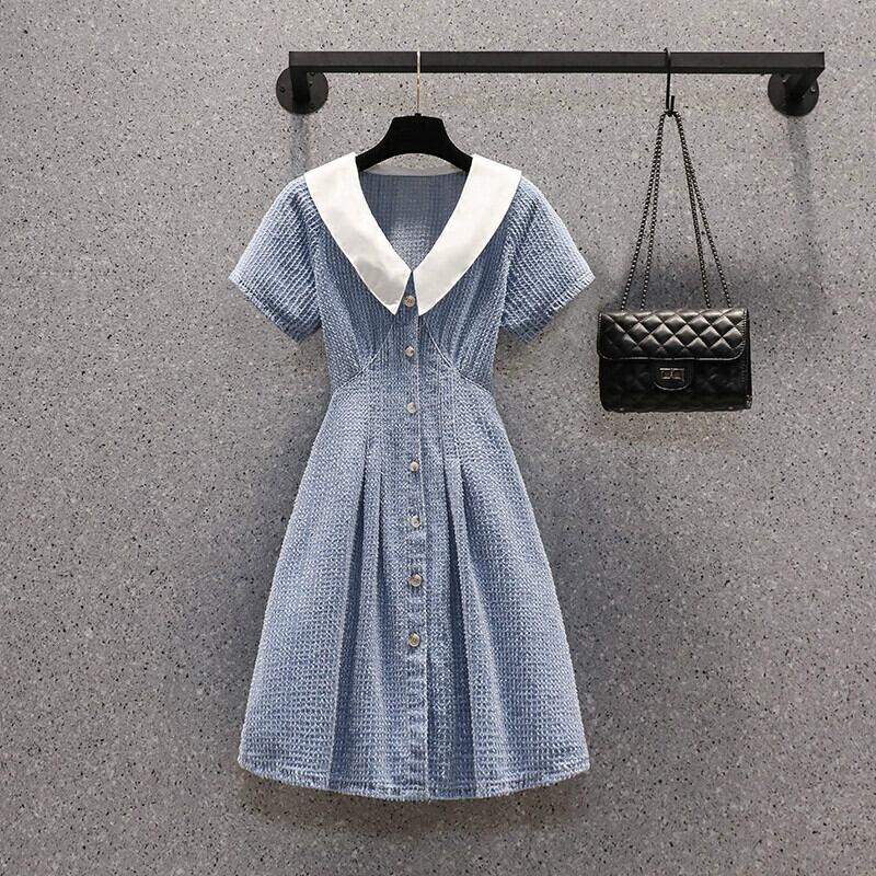 プラスサイズの女性の脂肪 mm 夏の新 2024 スタイルのレトロなデザインのスカートウエスト痩身デニムドレストレンディな 大きめサイズ サマー 夏物 841S1624150677246