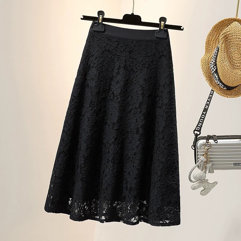 プラスサイズの婦人服ファットミリメートル春の新スタイル 2024 ファッショナブルなハイウエストレーススカート年齢を軽減するミッドレングス a ラインスカート 大きめサイズ スプリング 春物 Aライン 841S1616755266998