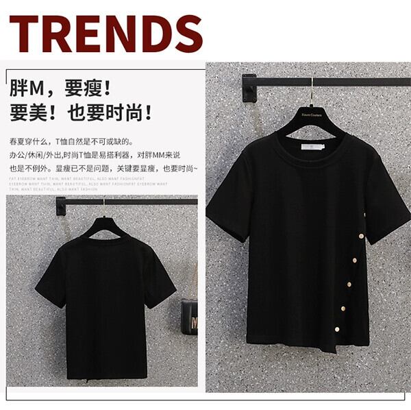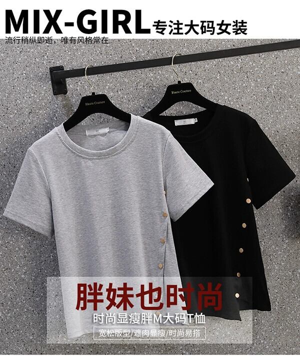 プラスサイズの女性の 2024 ファットシスター夏服不規則なスリット半袖ボトムシャツトップユニークなニッチ痩身 Tシャツ 大きめサイズ サマー 夏物 841S1644642071758