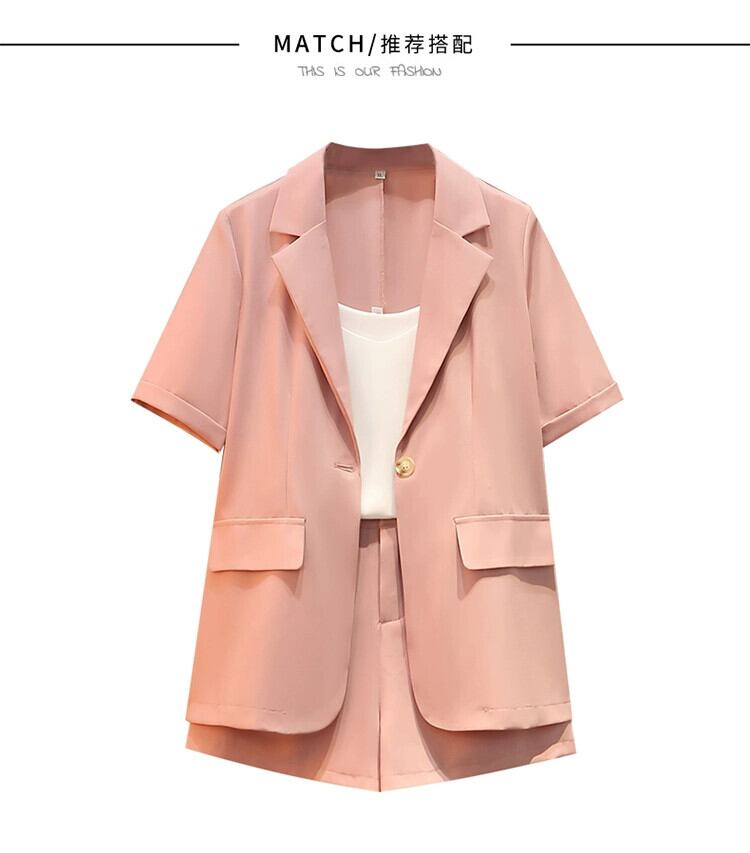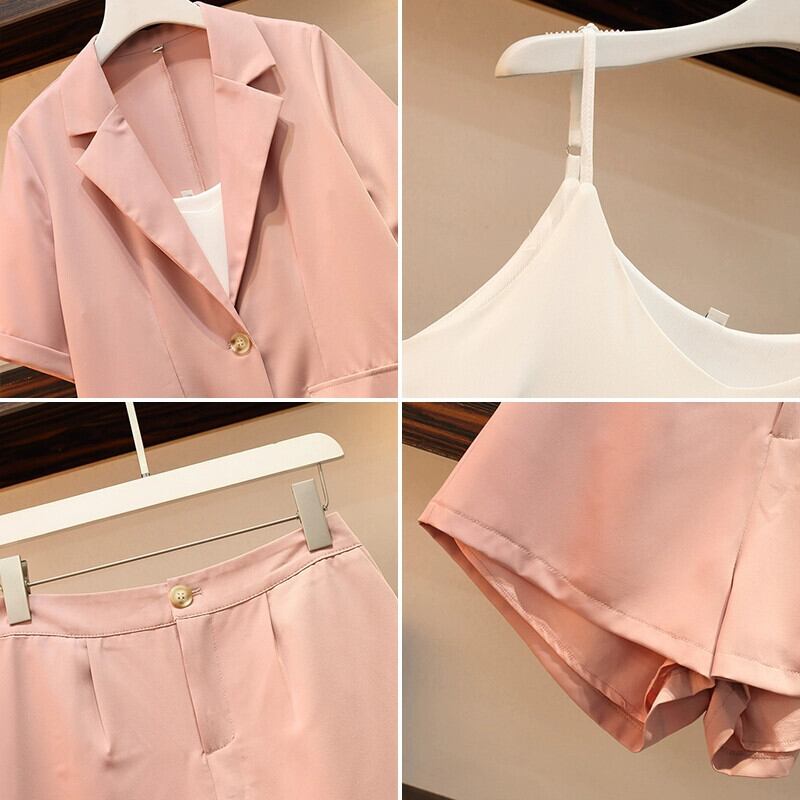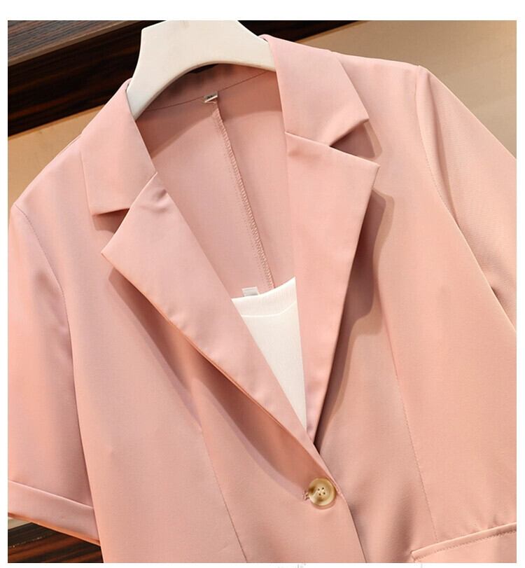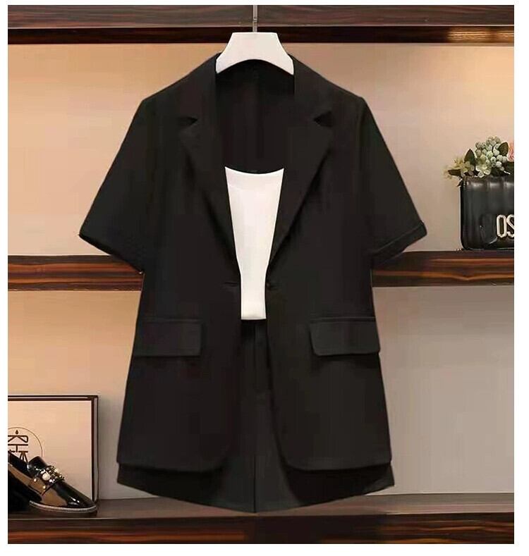 プラスサイズの婦人服 2024 夏の新スタイルファットシスター mm 気質ルーズカジュアルファッション小さなスーツジャケット 3 点セット 大きめサイズ サマー 夏物 841S1686902828190