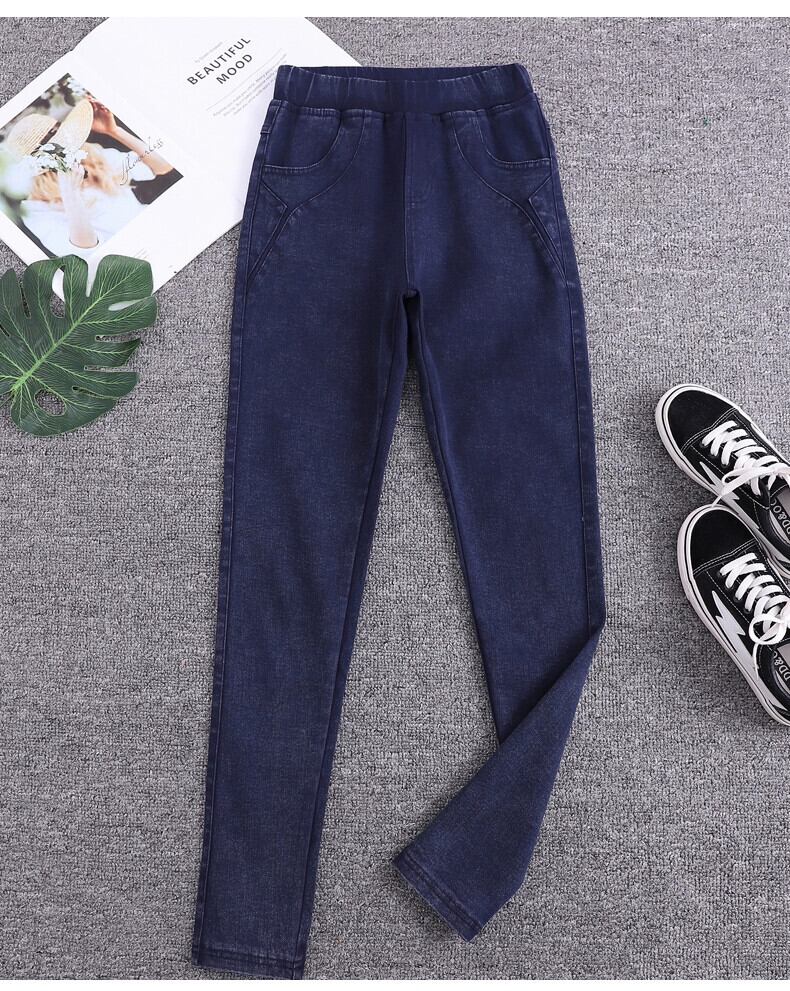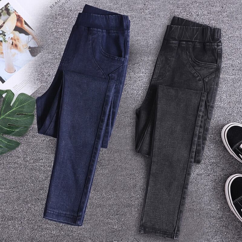 プラスサイズの婦人服ファットmm春の新スタイル2024ハイウエスト弾性カジュアルパンツ、ファッショナブルで多用途、スリムイミテーションデニムフットパンツ エラスティック 伸縮 大きめサイズ スプリング 春物 841S1695831324348