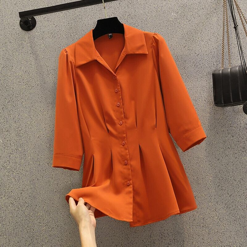 プラスサイズの婦人服 2024 夏服脂肪新しい気質年齢削減痩身トップスポロカラーファッショナブルなシャツ女性 大きめサイズ サマー 夏物 841S1627774503321