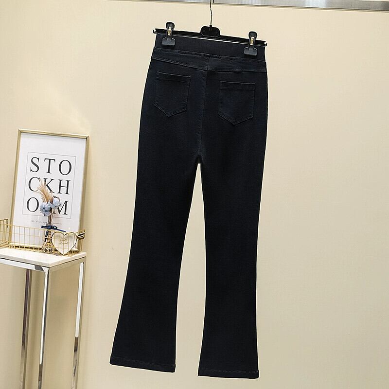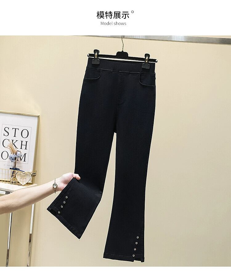 プラスサイズの婦人服ファットmm春の新スタイル2024デザインラブブレストマイクロフレア9点パンツハイウエストスリットカジュアルパンツ ハイウェスト 大きめサイズ スプリング 春物 841S165434683263