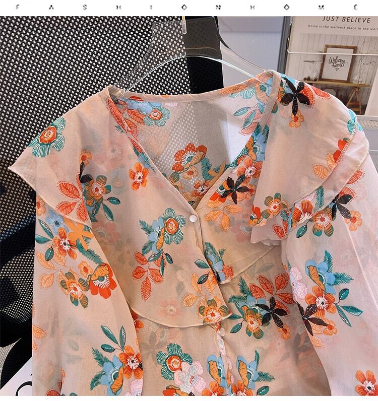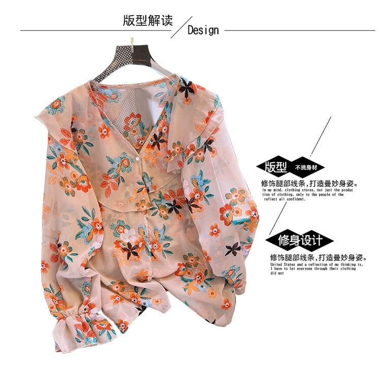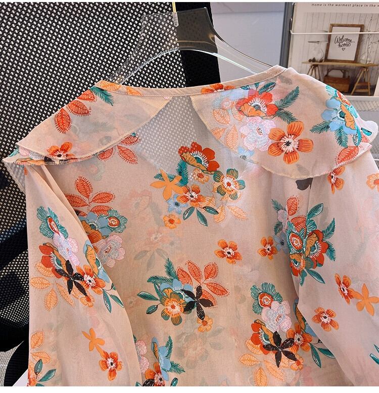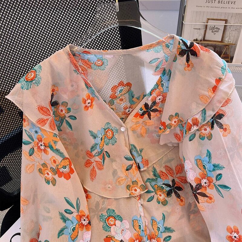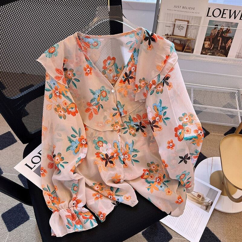 プラスサイズの女性の脂肪ミリメートル春の新 2024 ファッショナブルな人形襟シャツルーズ痩身シフォンシャツ花柄シャツ 大きめサイズ スプリング 春物 841S1691670931478