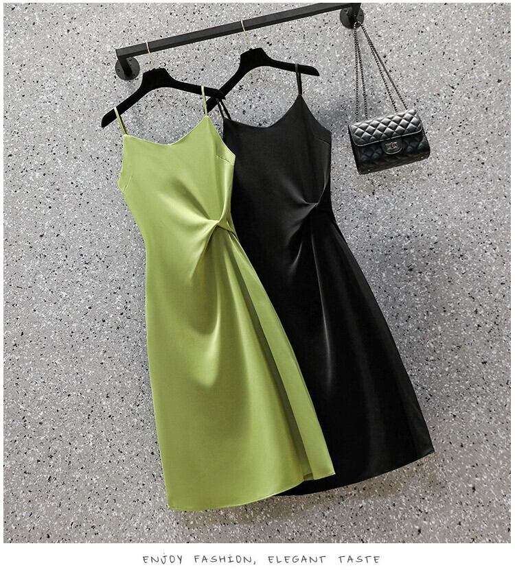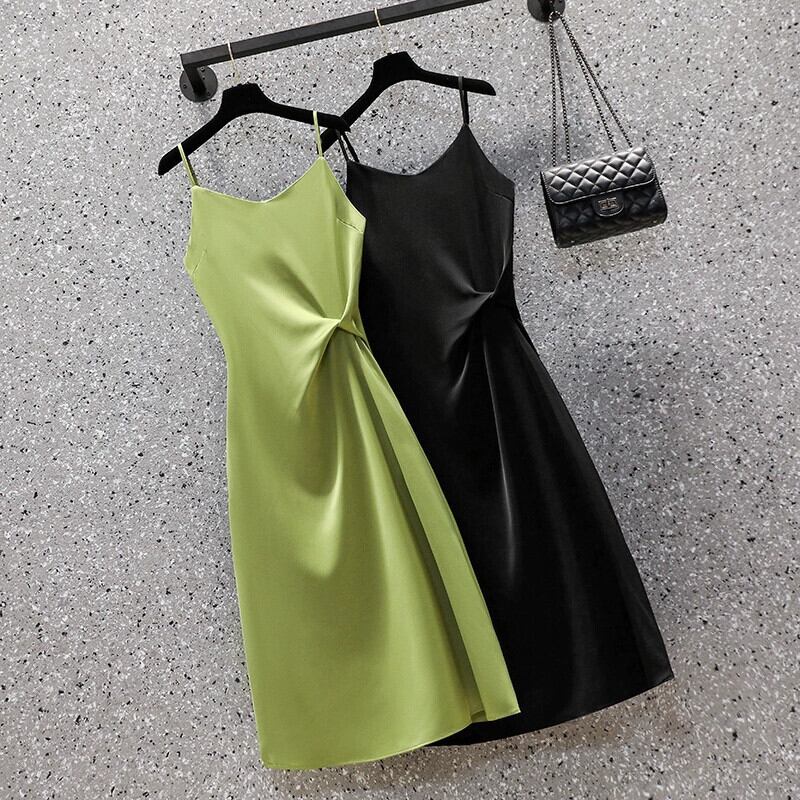 プラスサイズの女性の 2024 夏服脂肪新しいファッショナブルなウエストボトムスカートアボカドグリーンサスペンダードレス 大きめサイズ サマー 夏物 841S1682529214242
