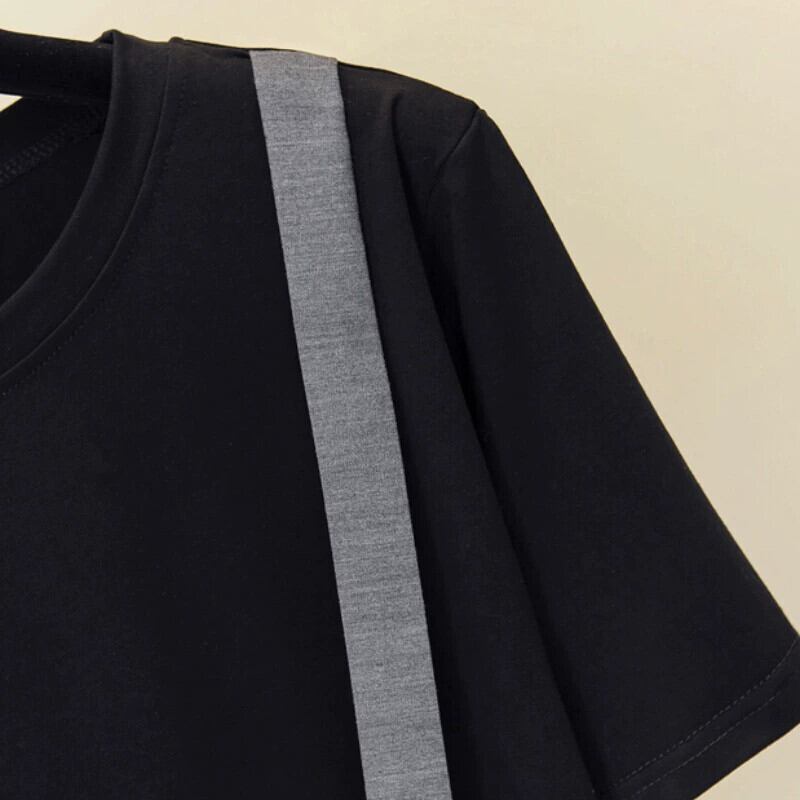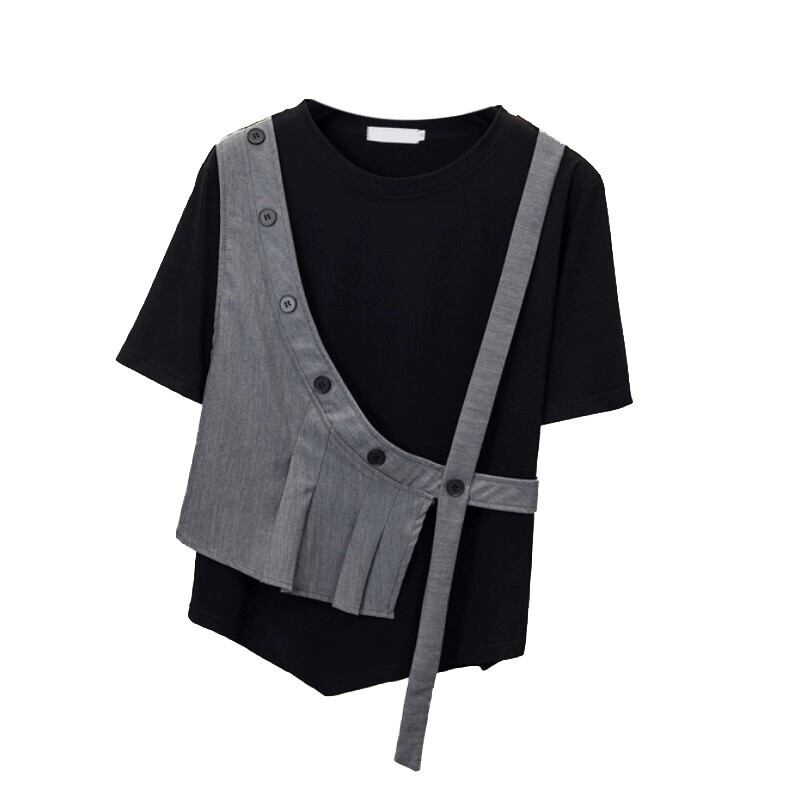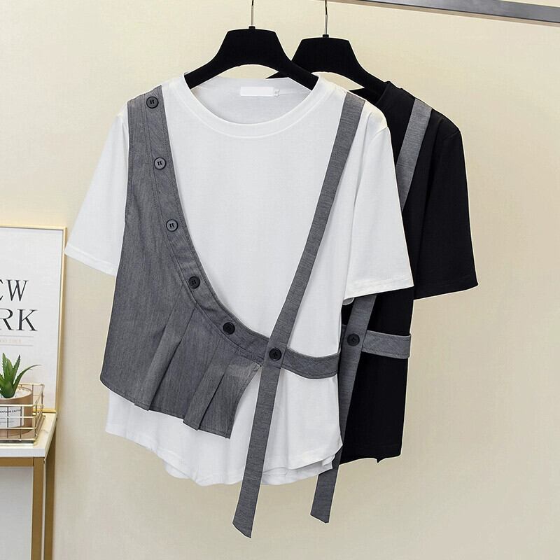 プラスサイズの女性の 2024 夏の新しいスタイル太った気質スリムルーズフェイクツーピースカジュアル半袖 T シャツトレンド 大きめサイズ サマー 夏物 Tシャツ 841S1667501100417