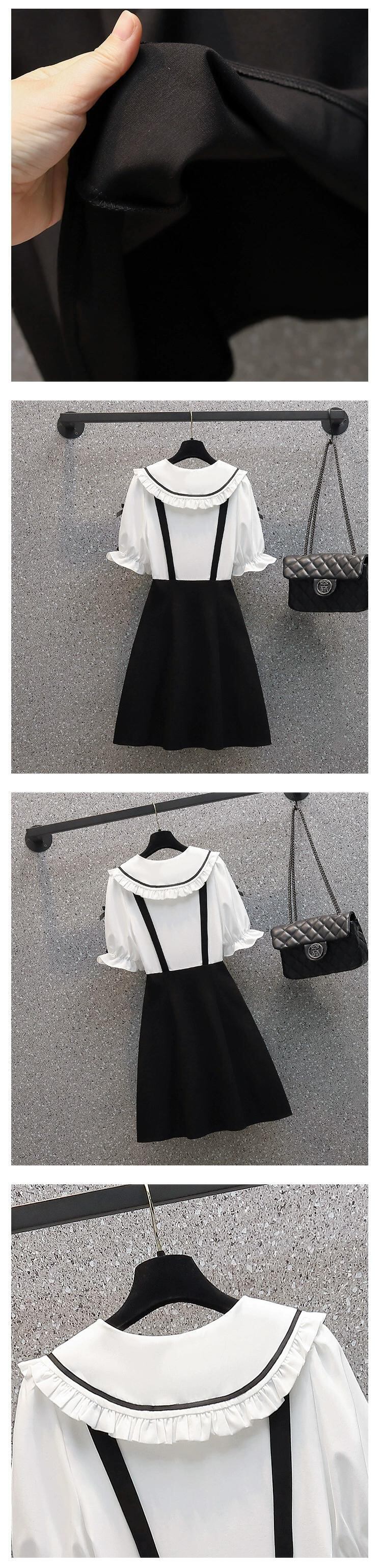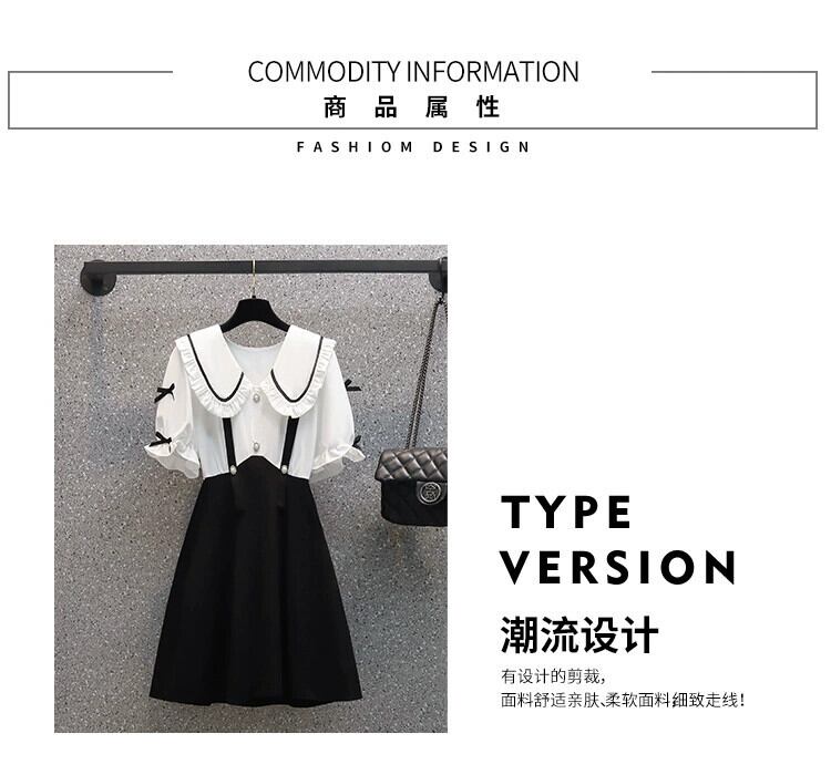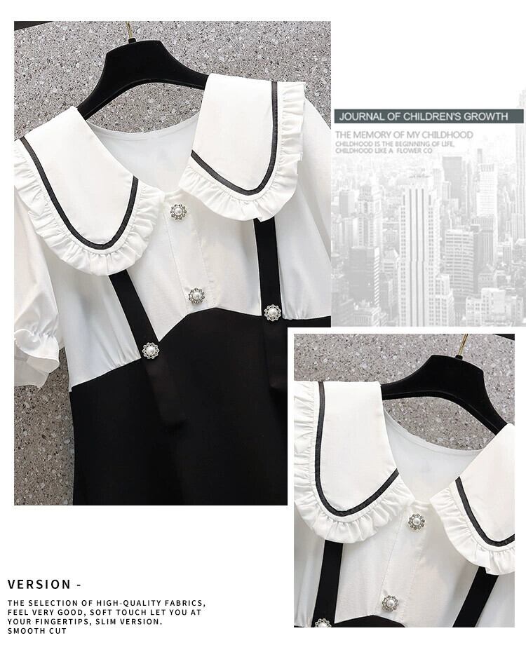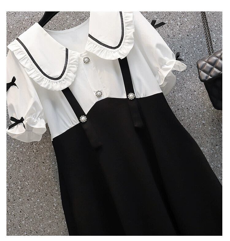 プラスサイズの女性の 2024 夏の新しいスタイルのファットシスターデザイン半袖フェイクツーピース人形襟フレンチドレス 大きめサイズ サマー 夏物 841S1621601892011