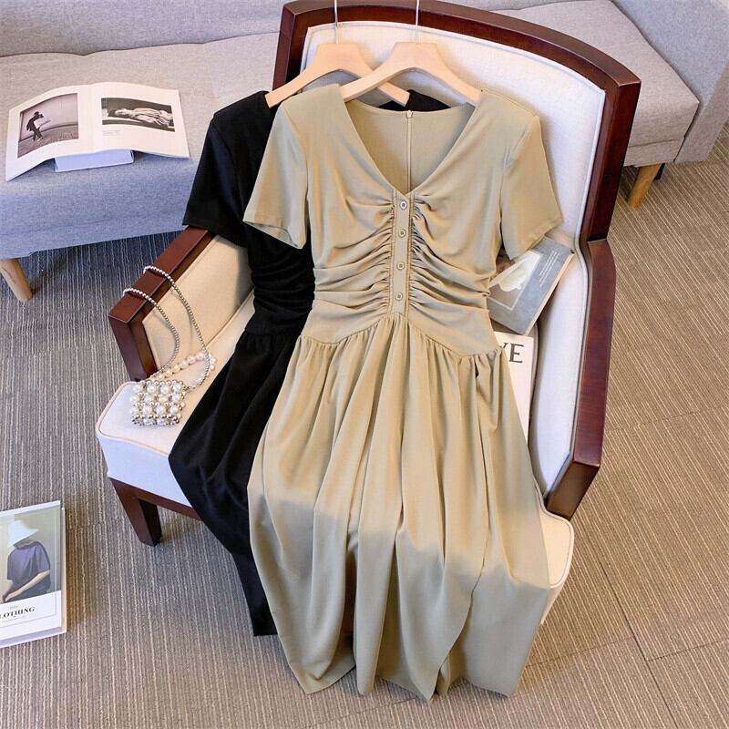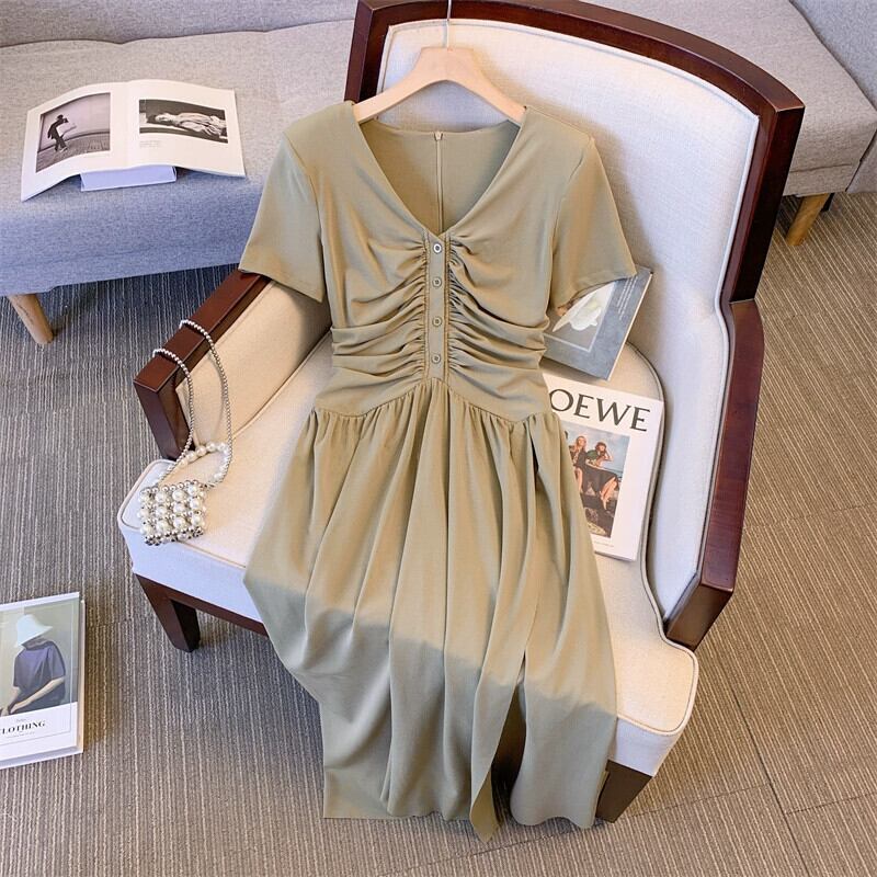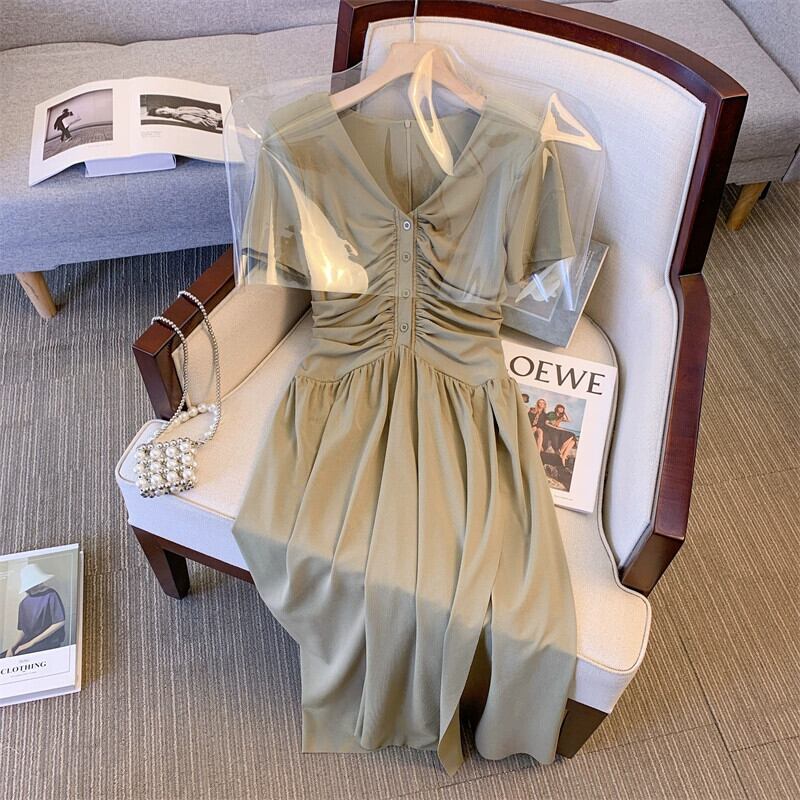 プラスサイズの女性の2024夏脂肪はスリムでエレガントに見えます、シックなスリットドレスが肉をカバーし、フレンチニッチロングスカート 大きめサイズ サマー 夏物 841S1676940637218