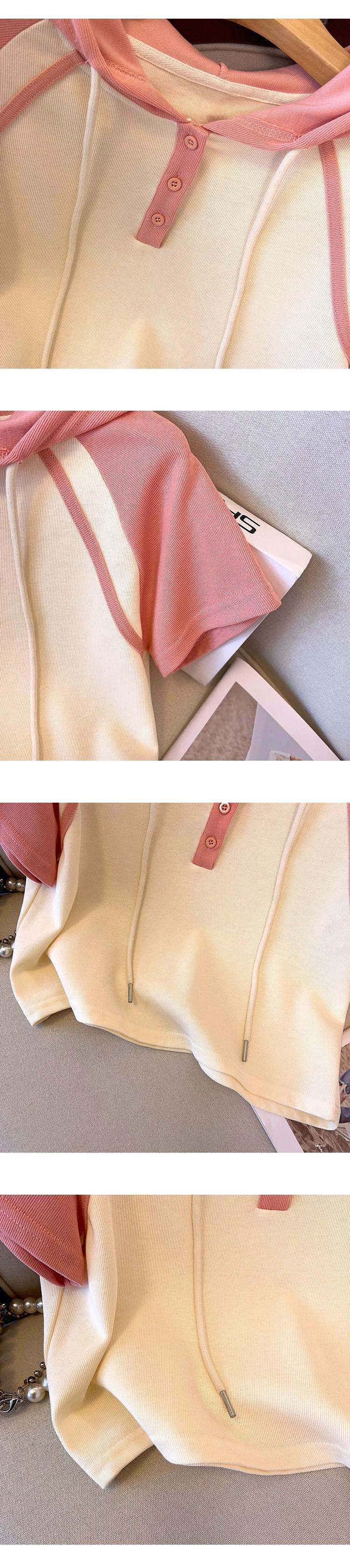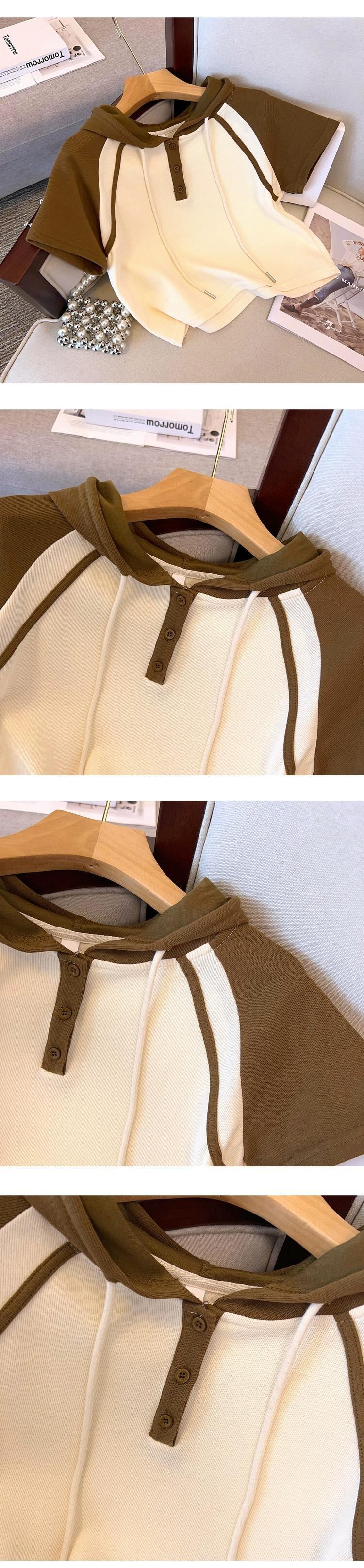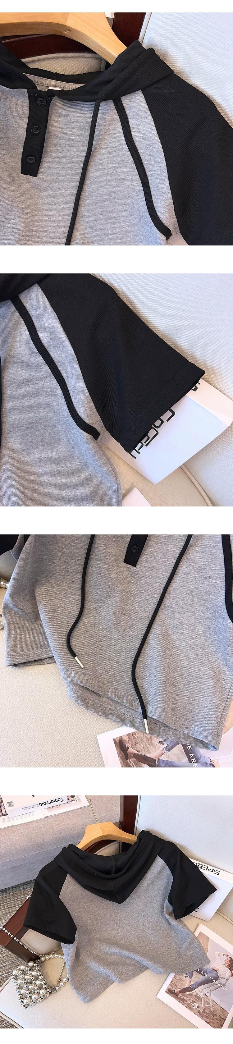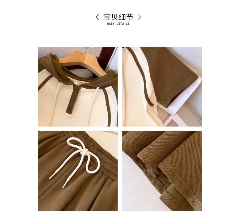 プラスサイズの婦人服 2024 流行の女性の夏の新しいファットシスターカジュアルフード付き Tシャツ巾着弾性ウエストショーツ 2 点セット エラスティック 伸縮 大きめサイズ サマー 夏物 ブルマー 841S1690012934184