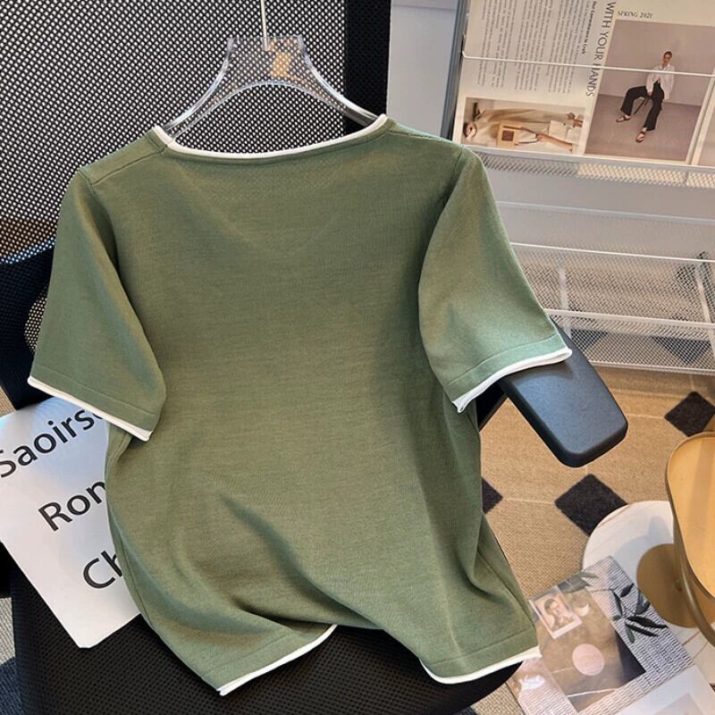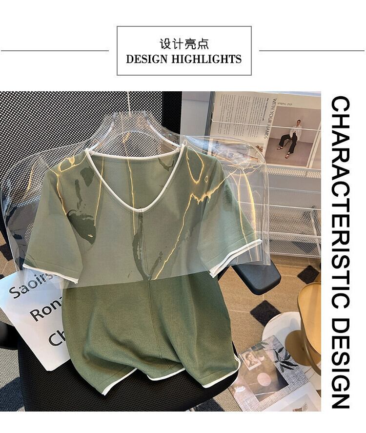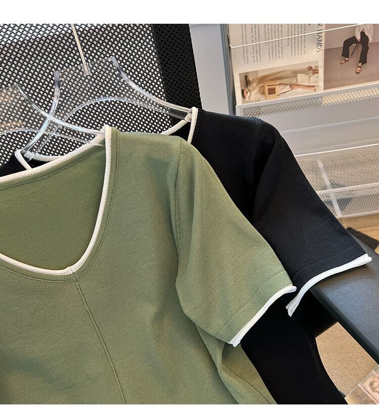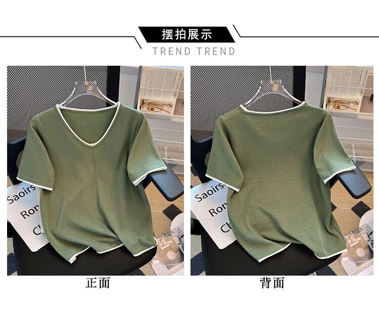 プラスサイズのトレンディな女性の夏服、脂肪を減らし年齢を減らす、スタイル多彩な T シャツ デザイン、スリムなニッチ ボトム シャツ トップ 大きめサイズ サマー 夏物 Tシャツ 841S1682790344143