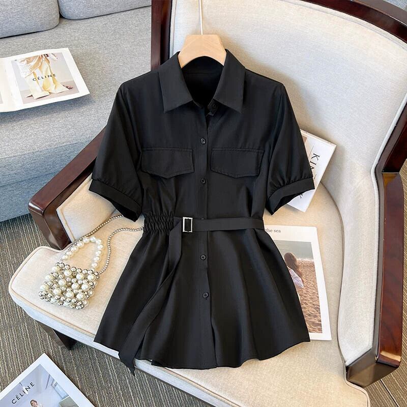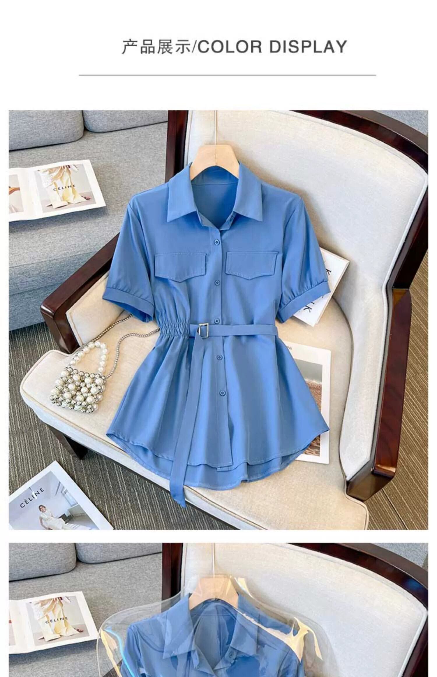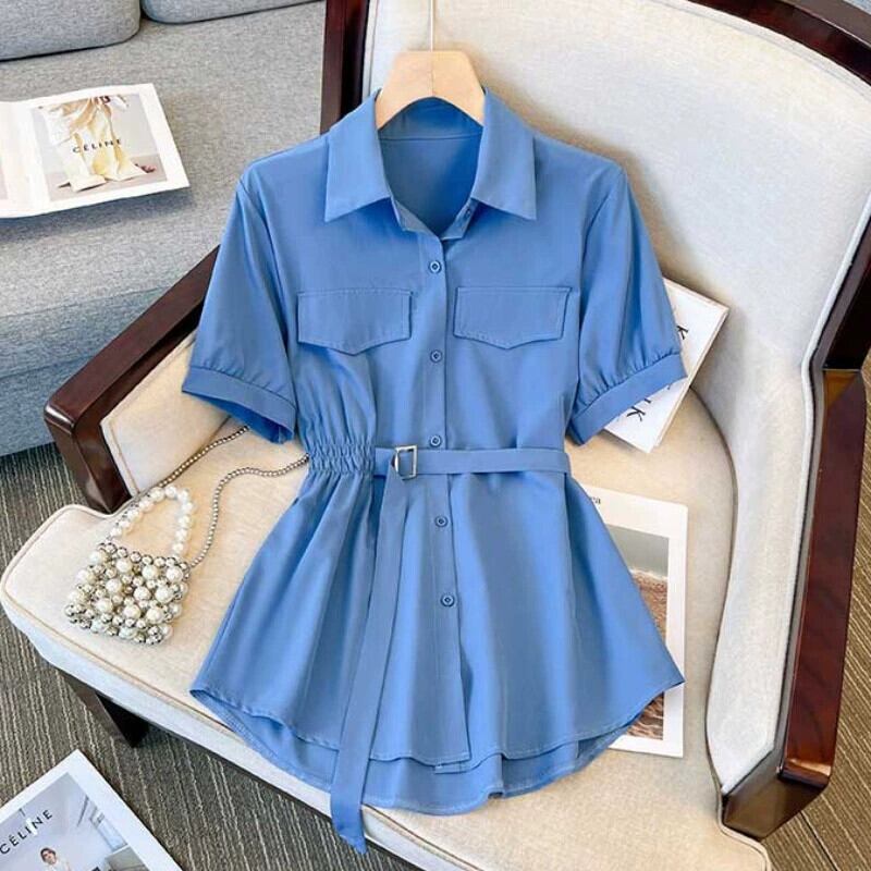 プラスサイズの女性の 2024 夏の新しいスタイル脂肪ファッショナブルな腹カバーシフォンファッションウエスト痩身シックなシャツ 大きめサイズ サマー 夏物 841S1645271801930