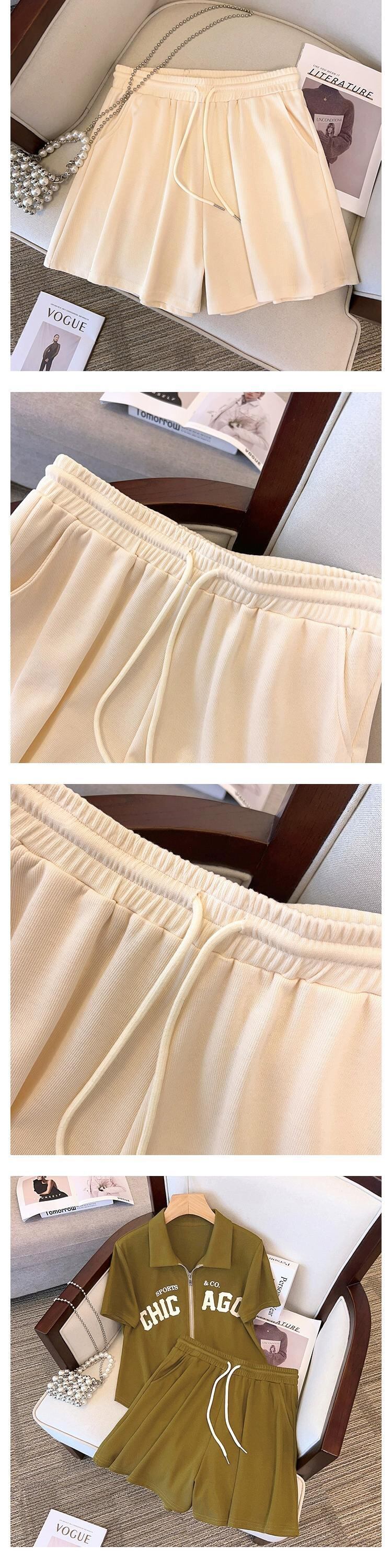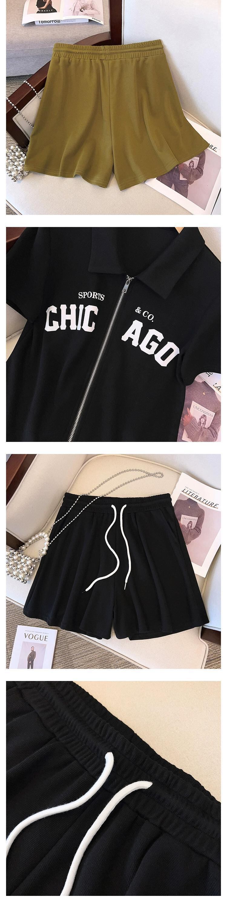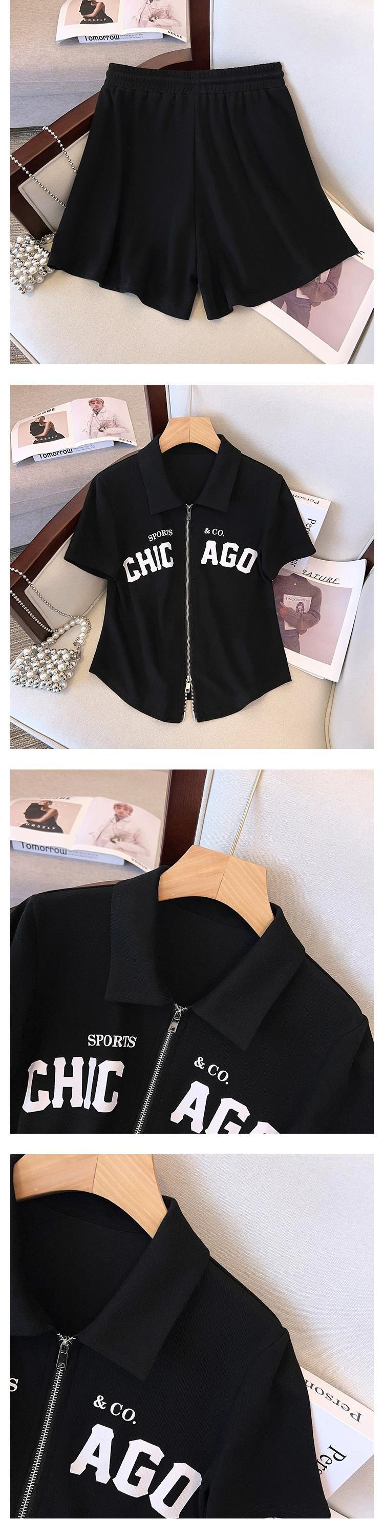 プラスサイズの婦人服 2024 ファットシスター夏カジュアルスーツレタープリントポロ半袖トップショーツ 2 点セット 大きめサイズ サマー 夏物 ブルマー 841S1648264407536