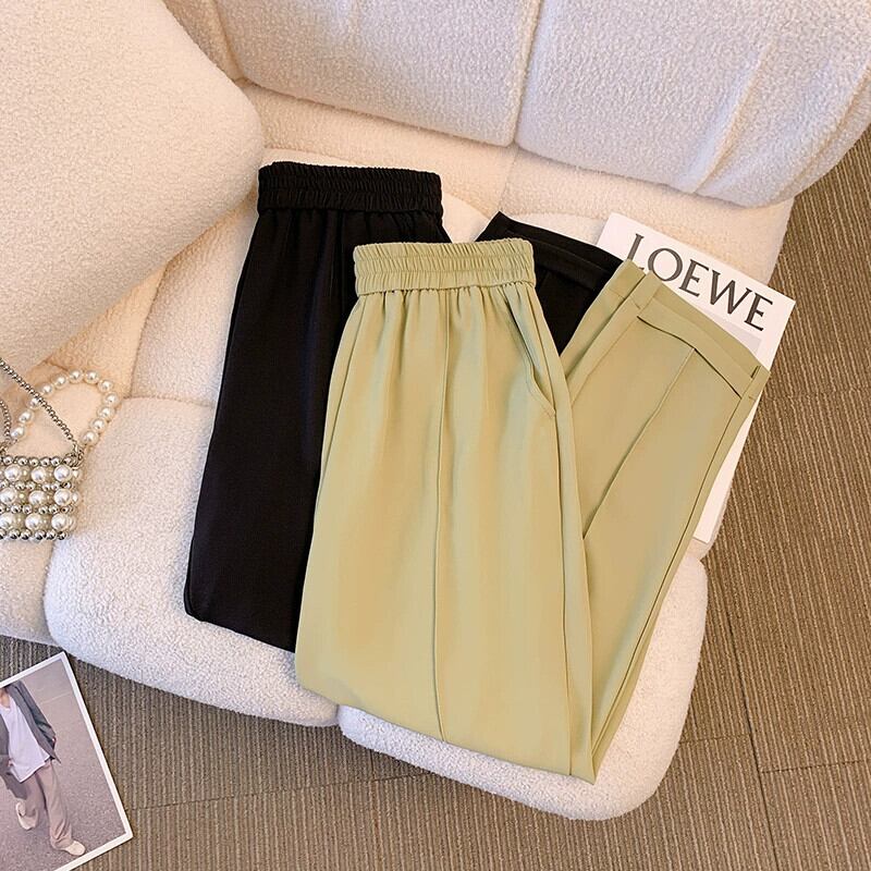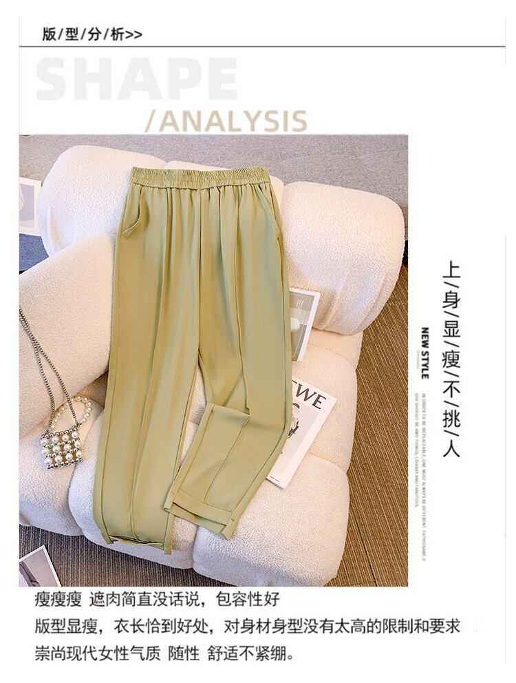 プラスサイズの女性の 2024 夏のカジュアルパンツ脂肪、ハイウエスト、薄い、洋ナシ形のボディ痩身 9 ポイント スーツ パンツ 大きめサイズ サマー 夏物 841S1681300090830