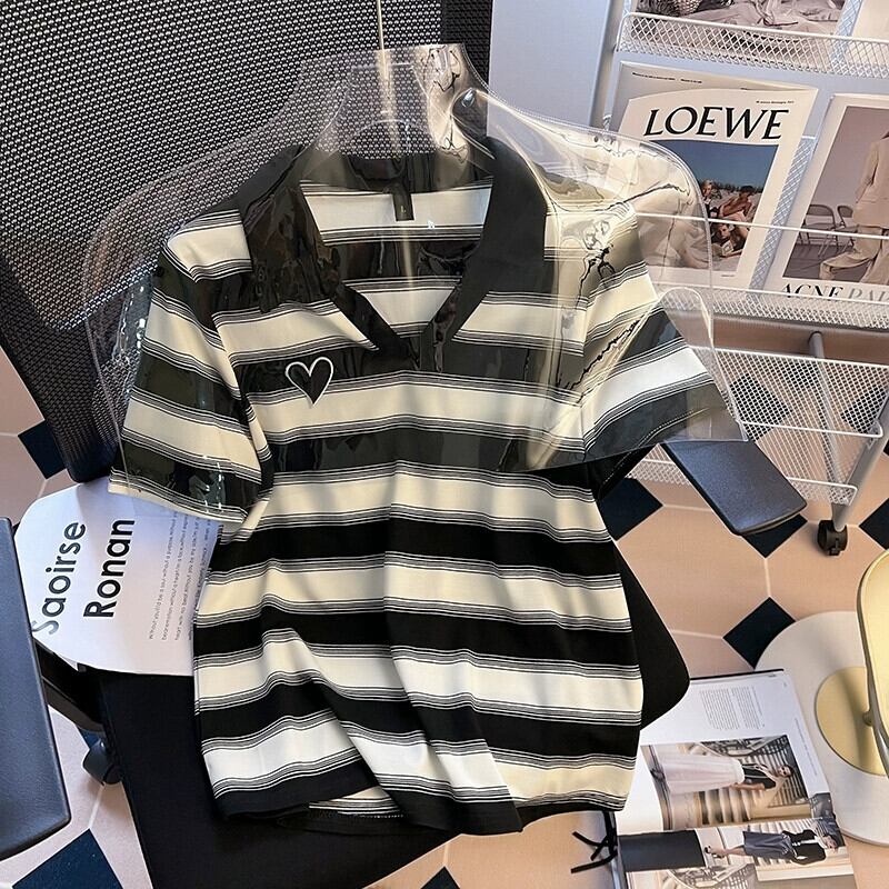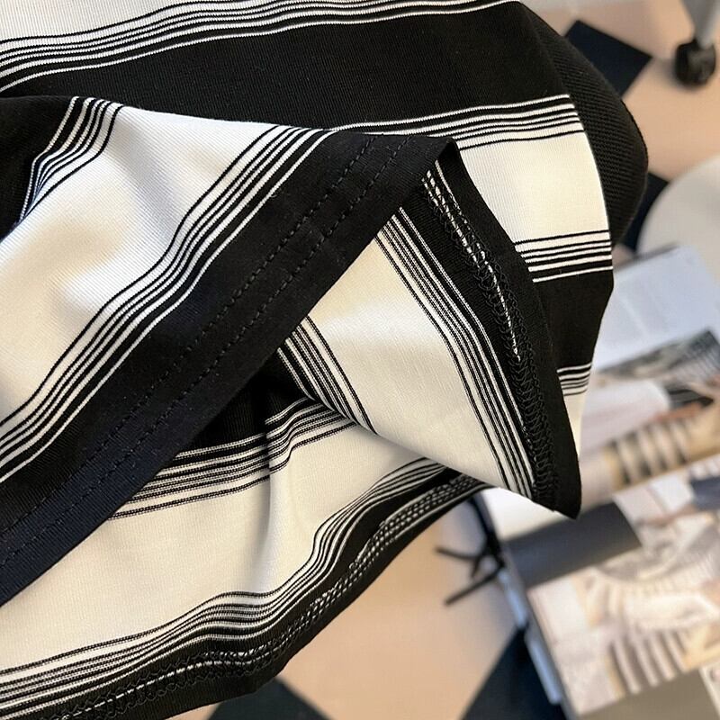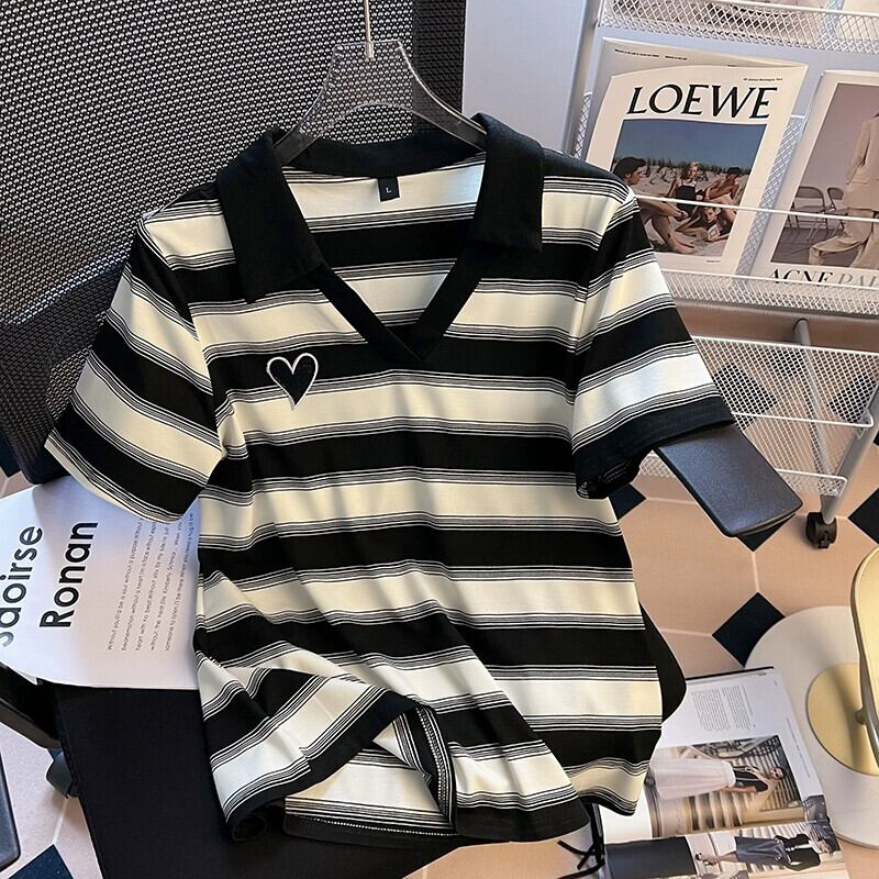 プラスサイズの女性の 2024 夏の新しいスタイルのファットシスターファッショナブルな半袖ストライプ年齢を減らすトップス気質多用途 T シャツ 大きめサイズ サマー 夏物 Tシャツ 841S1628137272786