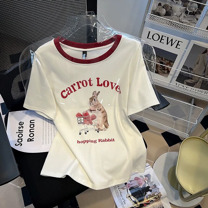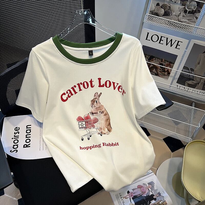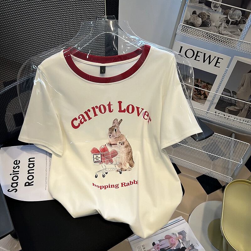 プラスサイズの女性の 2024 夏服脂肪の新しいファッション多用途プリントラウンドネック半袖 T シャツ痩身トップス 大きめサイズ サマー 夏物 Oネック Tシャツ 841S1637897702669