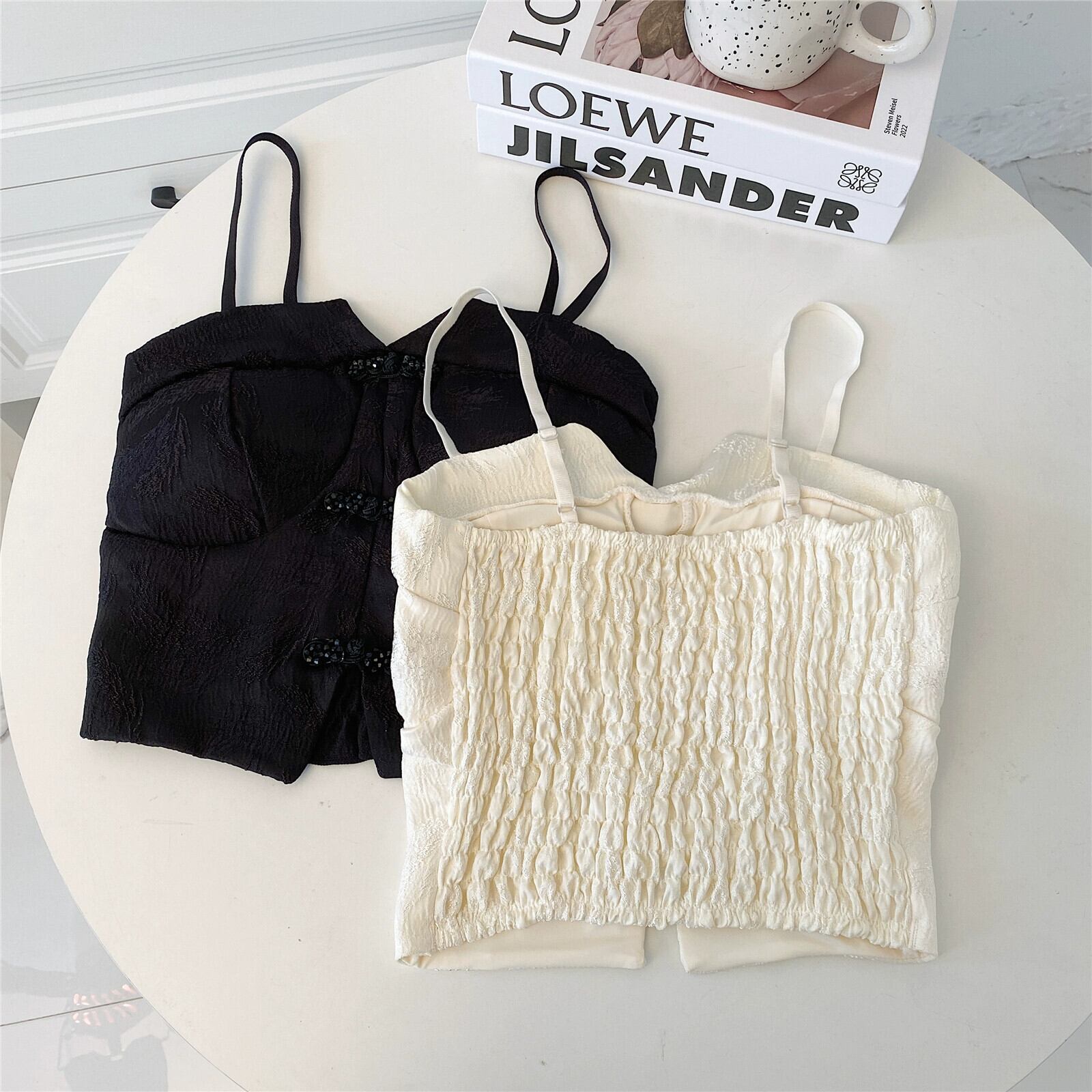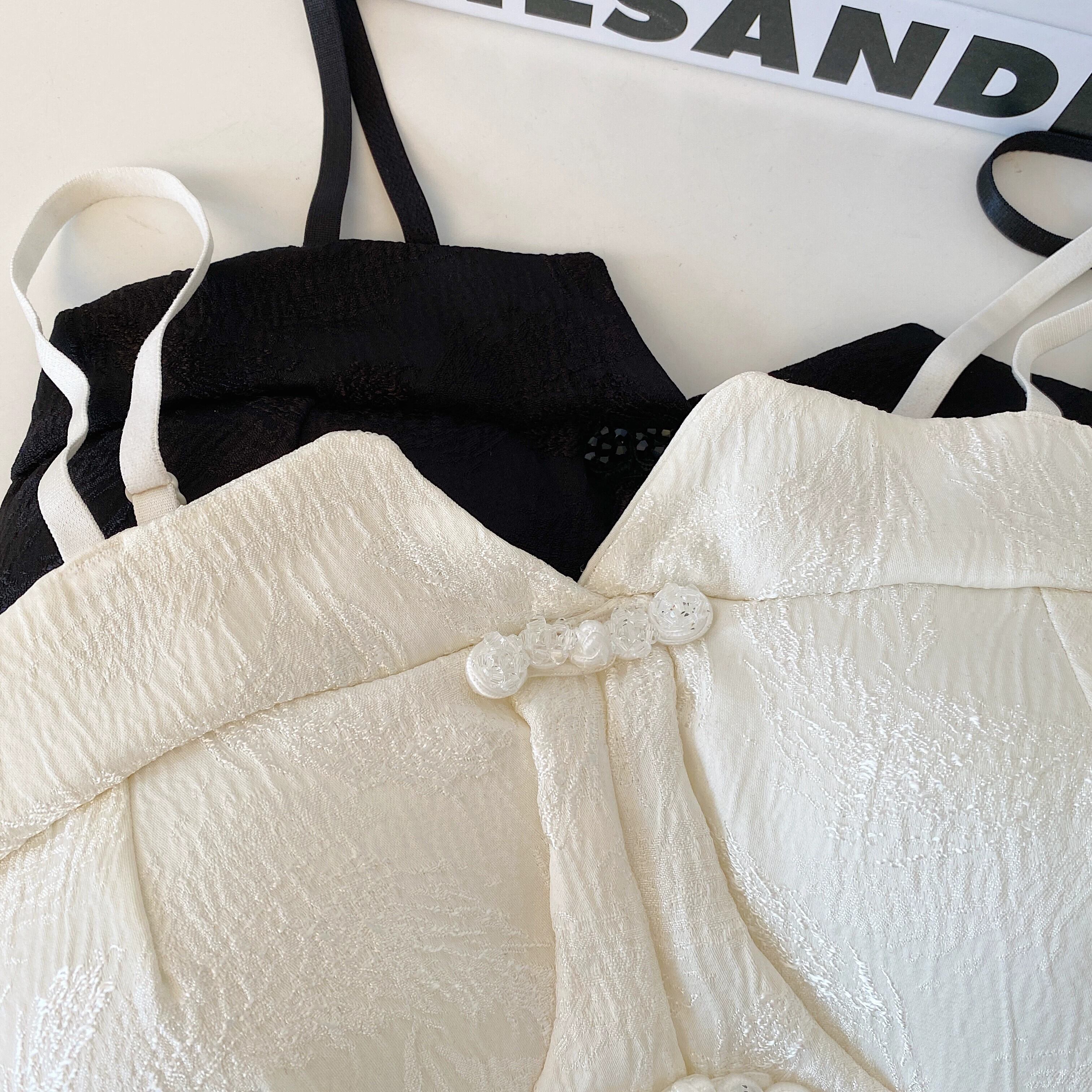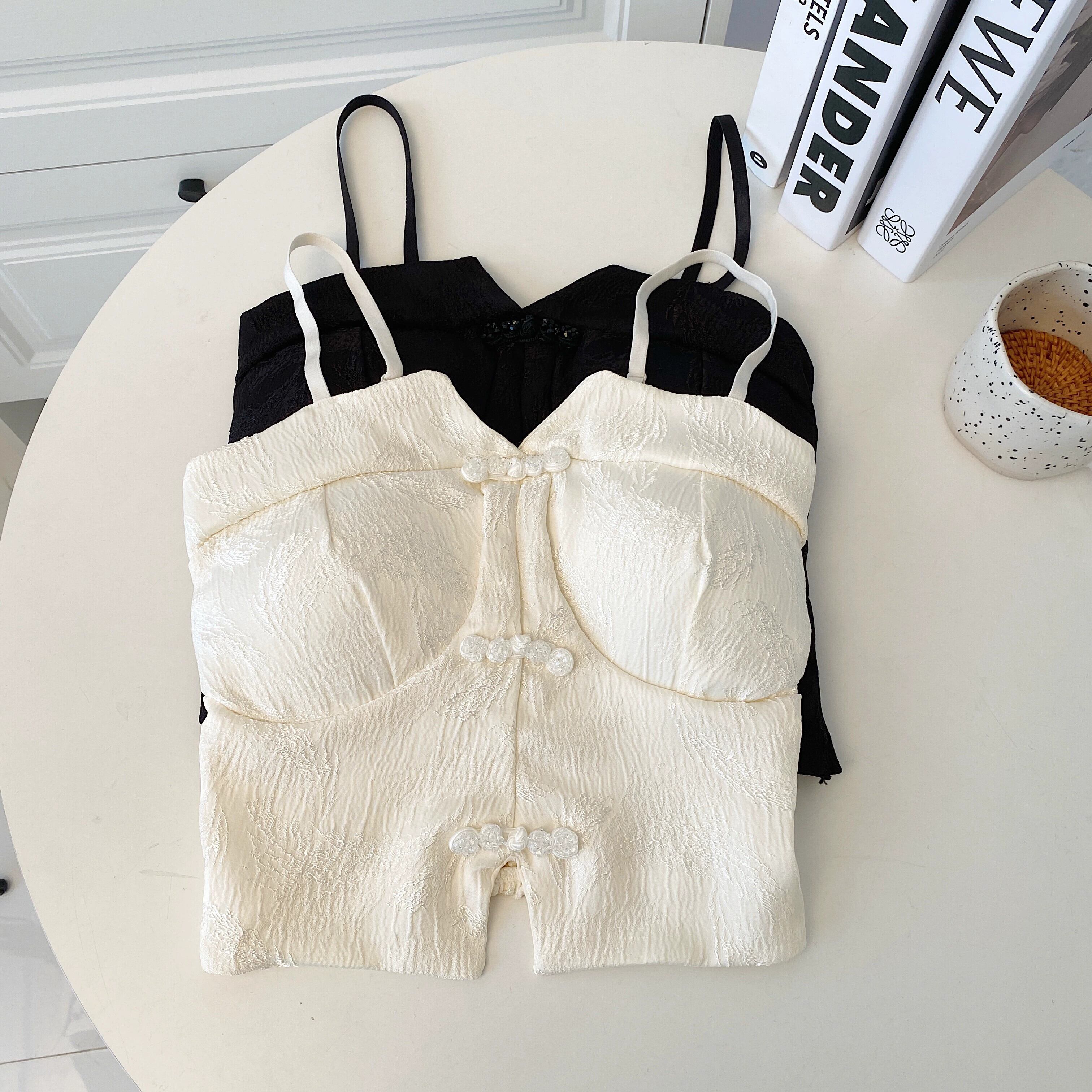 プラスサイズの婦人服 2024 脂肪姉妹夏服新レトロ中国風プレートバックルダークパターンベルト胸パッドキャミソール女性 大きめサイズ サマー 夏物 ハーネス 841S1637661210527